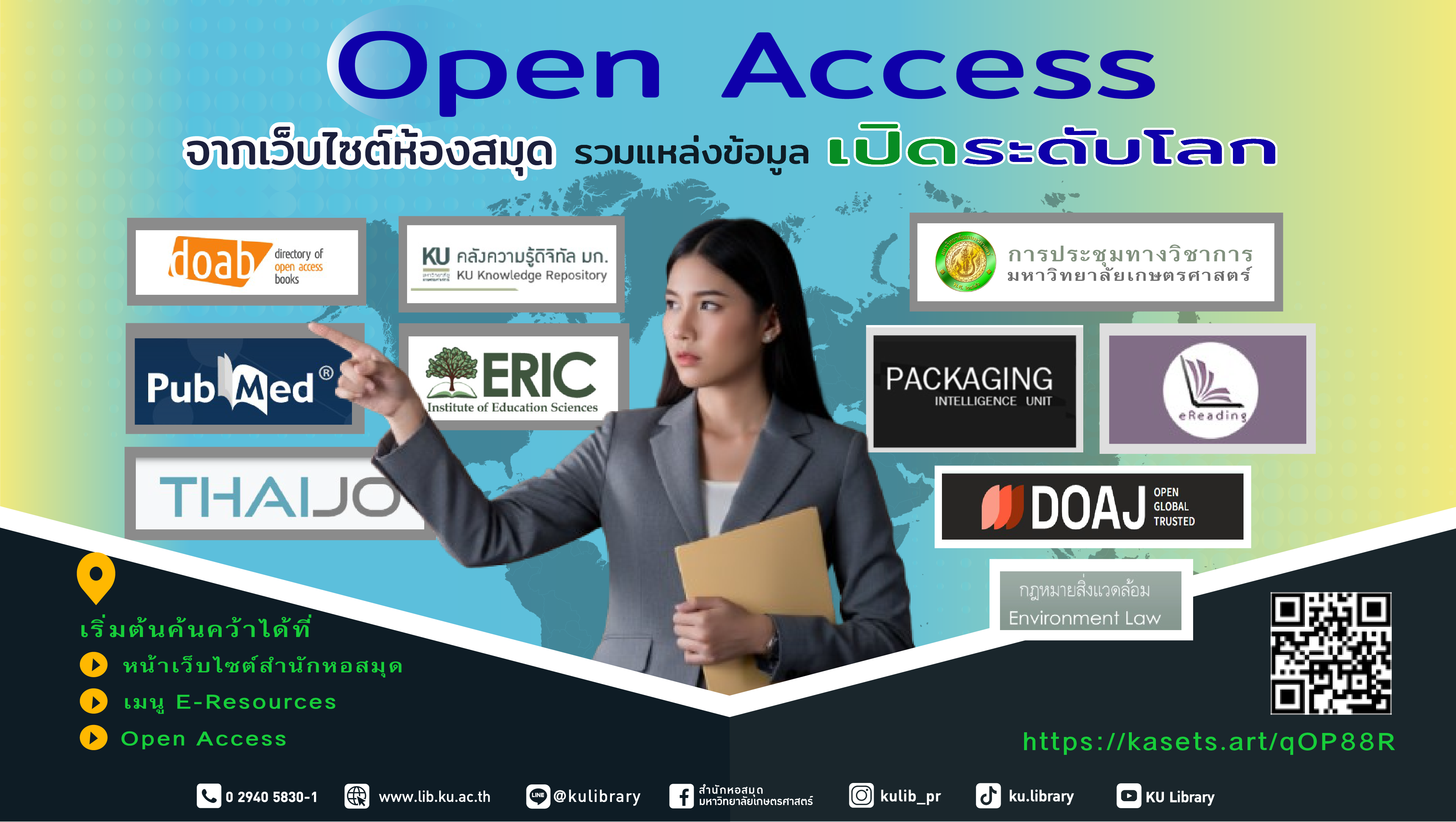 เริ่มต้นค้นคว้าได้ที่ หน้าเว็บไซต์สำนักหอสมุด → เมนู E-Resources >> Open Access