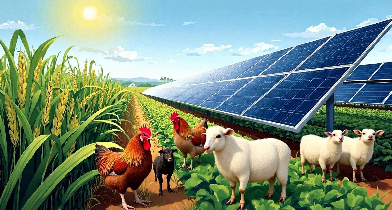 ในฟากปศุสัตว์ Solar grazing การปล่อยแกะหรือแพะกัดเล็มหญ้าใต้แผงโซลาร์กำลังได้รับความนิยม ลดการใช้เครื่องจักรและเชื้อเพลิง ขณะเดียวกันก็ให้ร่มเงาแก่สัตว์ไปพร้อมกัน