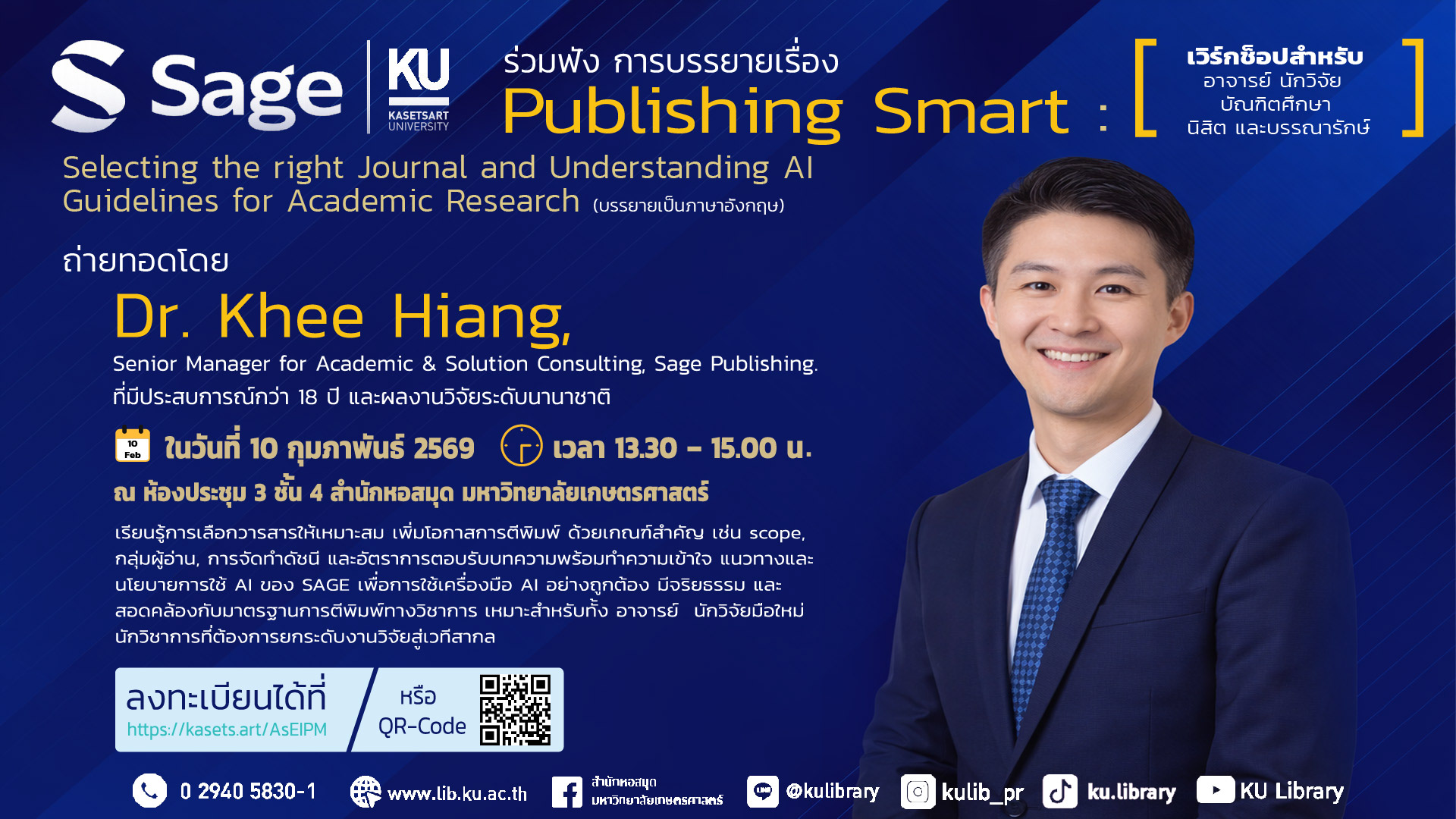 กิจกรรม Sage Author Workshop เรื่อง Publishing Smart : Selecting the right Journal and Understanding AI Guidelines for Academic Research