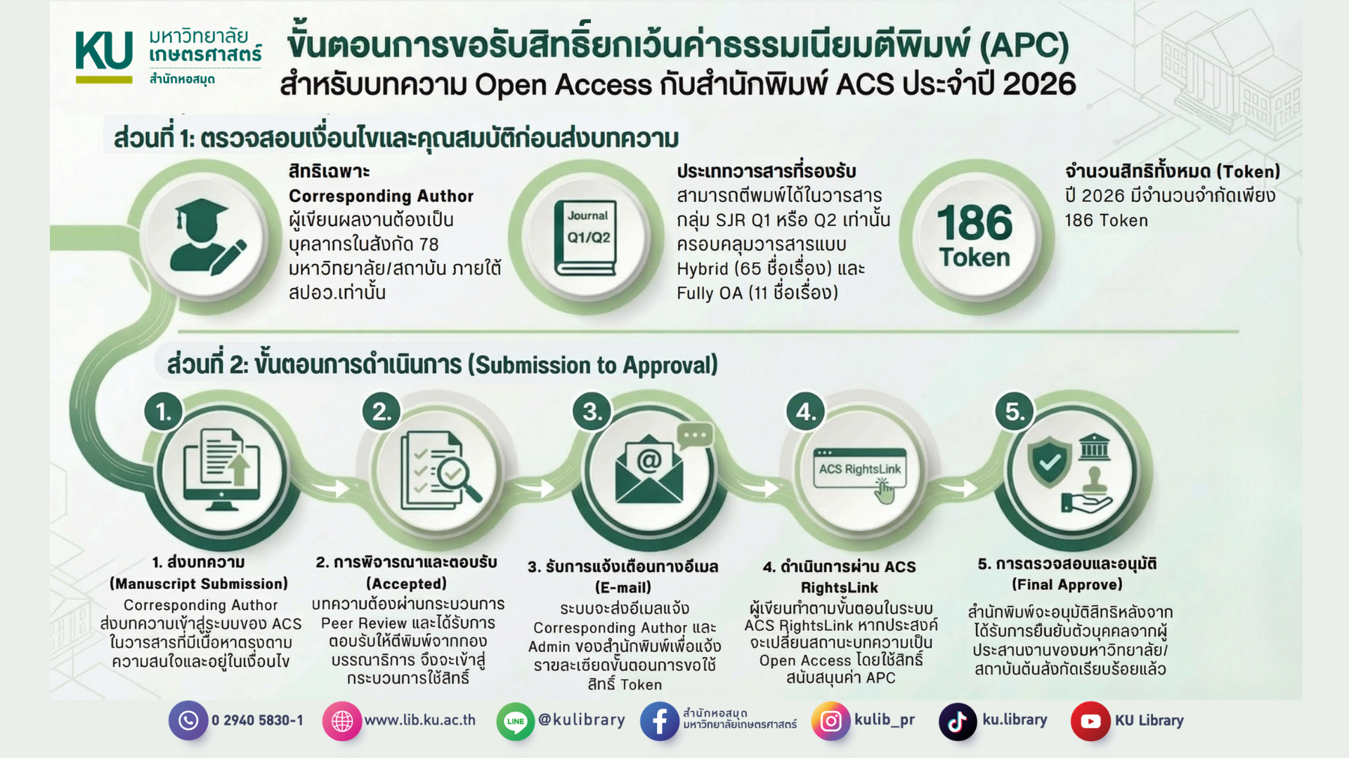 อาจารย์ และนักวิจัย มก. ทุกวิทยาเขต สามารถตีพิมพ์วารสารเผยแพร่ผลงานวิจัยลงในบทความประเภท Open Access ในวารสารของ ACS ได้ฟรีโดยไม่มีค่าใช้จ่าย ระยะเวลา : ม.ค.-ธ.ค. 2569