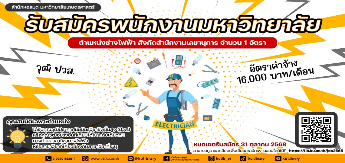 สามารถดูรายละเอียดเพิ่มเติมและสมัครงานออนไลน์ได้ที่ https://lib.ku.ac.th/job2565