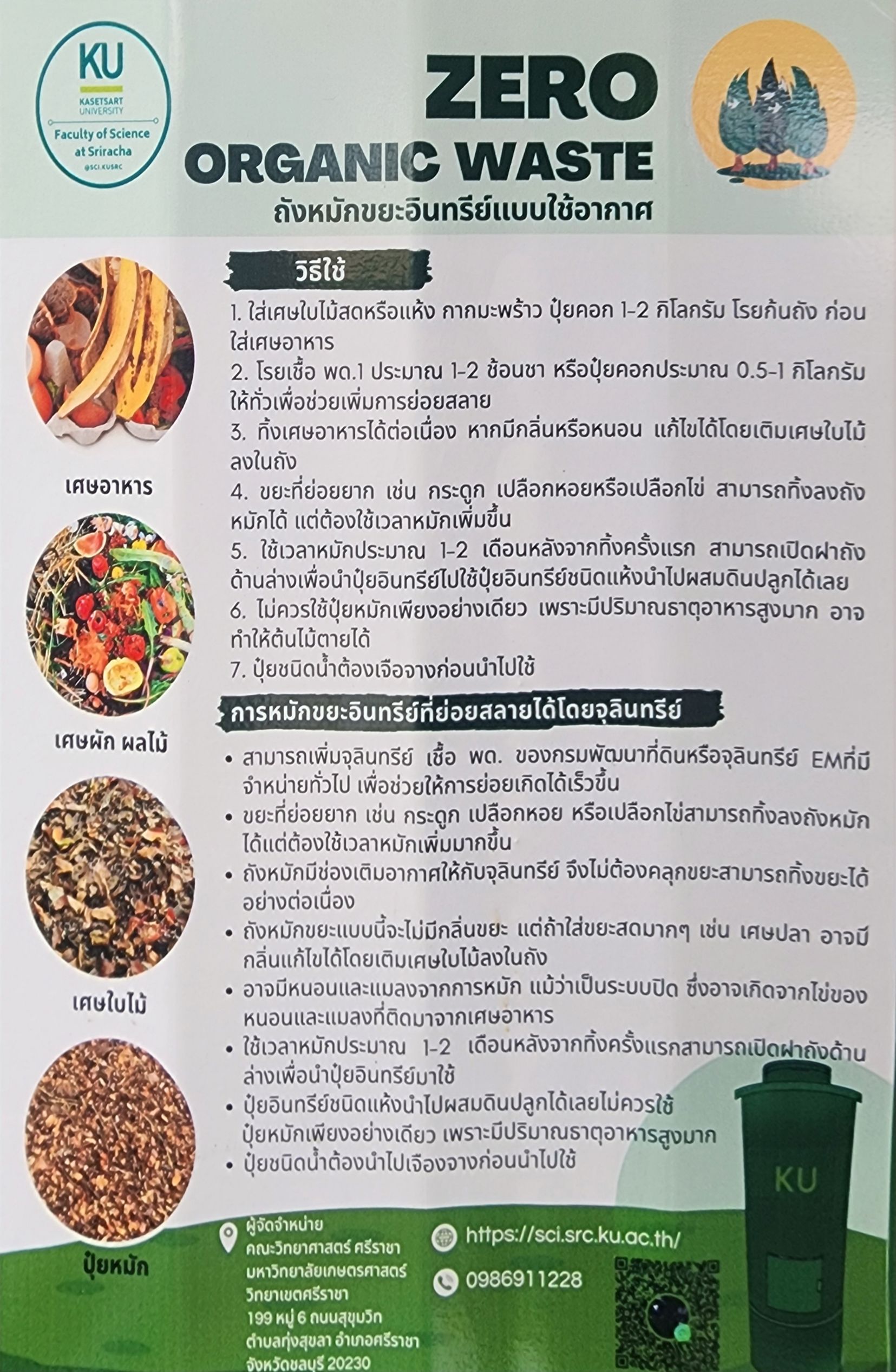 ** สำนักหอสมุดได้รับการสนับสนุนถังหมักขยะอินทรีย์ Zero Organic Waste จาก อาจารย์เมธี จันทโรปกรณ์ คณะวิทยาศาสตร์ ศรีราชา เพื่อใช้ในการกำจัดขยะเศษอาหาร ให้นำไปใช้ประโยชน์เป็นปุ๋ยและน้ำหมักชีวภาพ โดยติดตั้งที่ ศาลาสีเขียว ชั้น 4