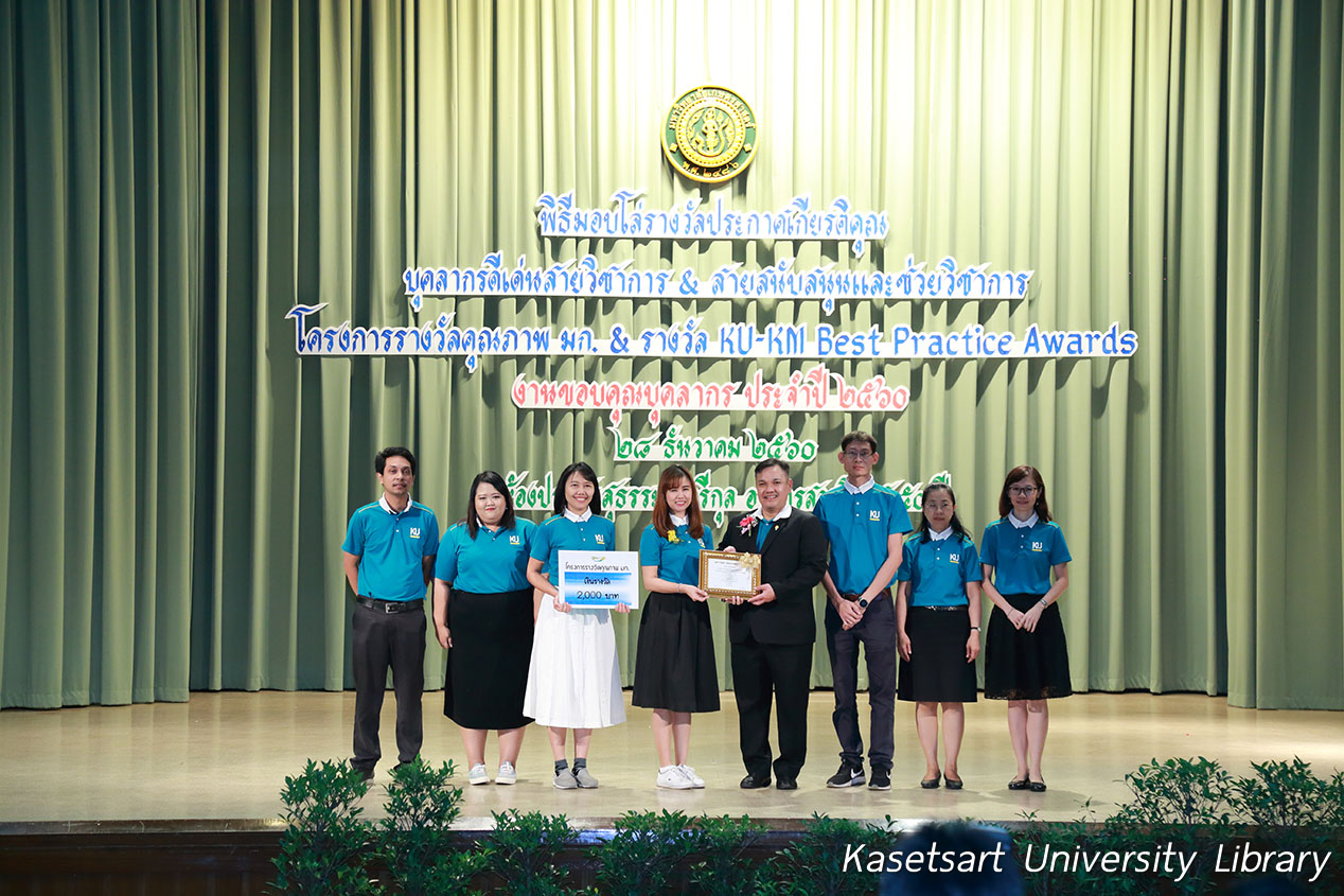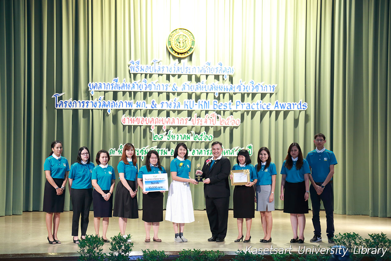 สำนักหอสมุดเข้ารับรางวัลโครงการรางวัลคุณภาพ มก. & รางวัล KU-KM Best Practice Awards