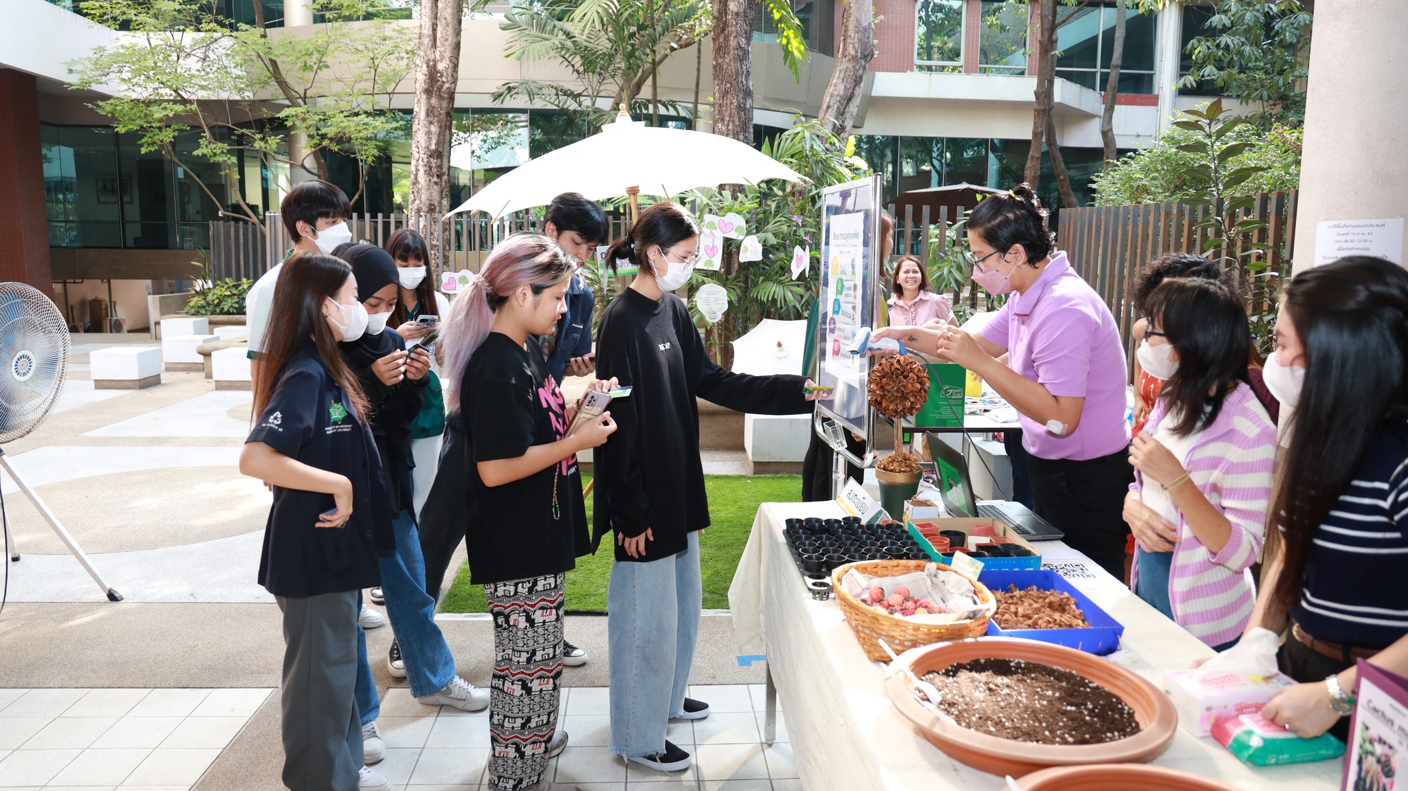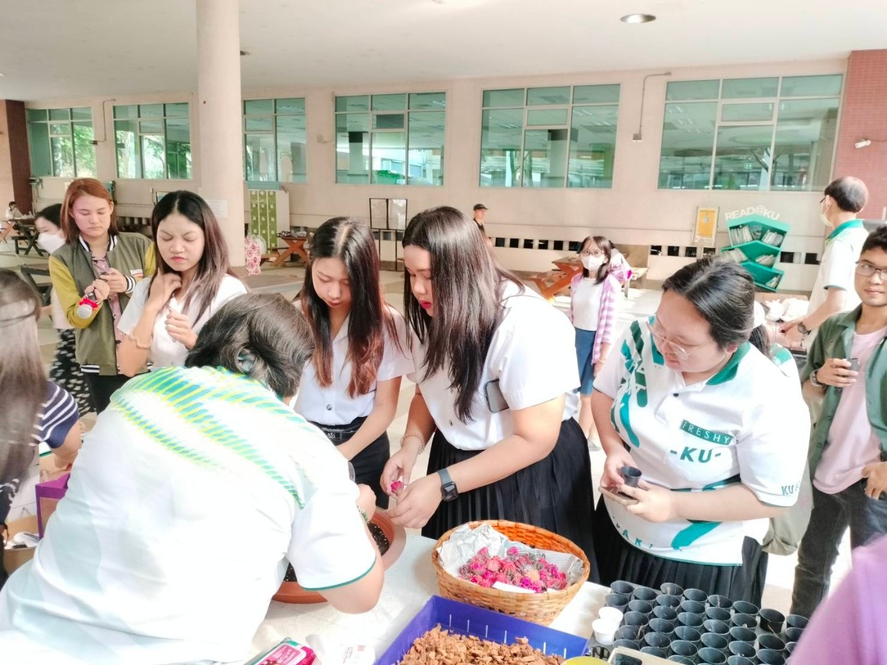 ซึ่งจัดไปเมื่อเช้าวันนี้ (14 กุมภาพันธ์ 2567) ณ ลานเอนกประสงค์ สำนักหอสมุด ในงานมีน้องๆนิสิต และบุคลากร มก. ให้ความสนใจร่วมปลูกต้นไม้รัก(ษ์)โลก กันแบบแน่นๆ
