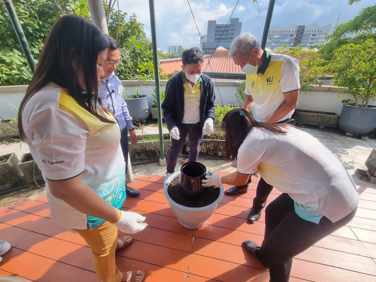 สำนักหอสมุด มหาวิทยาลัยเกษตรศาสตร์ ได้ดำเนินโครงการจัดการพลังงานและสิ่งแวดล้อม สำนักหอสมุด มหาวิทยาลัยเกษตรศาสตร์ โดยมีวัตถุประสงค์เพื่อจัดกิจกรรมส่งเสริมการเรียนรู้ด้านการอนุรักษ์พลังงานและสิ่งแวดล้อมให้แก่ผู้ใช้บริการและบุคลากรให้มีความรู้เกี่ยวกับการบริหารจัดการขยะ โดยได้เชิญวิทยากรจากกรมส่งเสริมคุณภาพสิ่งแวดล้อม ให้เกียรติเป็นวิทยากรอบรมเชิงปฏิบัติการ (Work Shop) ในหัวข้อ “การจัดทำปุ๋ยและน้ำหมักชีวภาพจากเศษอาหารและเศษใบไม้” ในวันที่ 25 พฤศจิกายน 2565 เวลา 14.00น. ณ ห้องสมุดในสวน สำนักหอสมุด มหาวิทยาลัยเกษตรศาสตร์ ซึ่งกิจกรรมได้รับความสนใจจากบุคลากรฝ่ายต่างๆ และแม่บ้านของสำนักหอสมุดเข้าร่วมรับฟังการอบรม